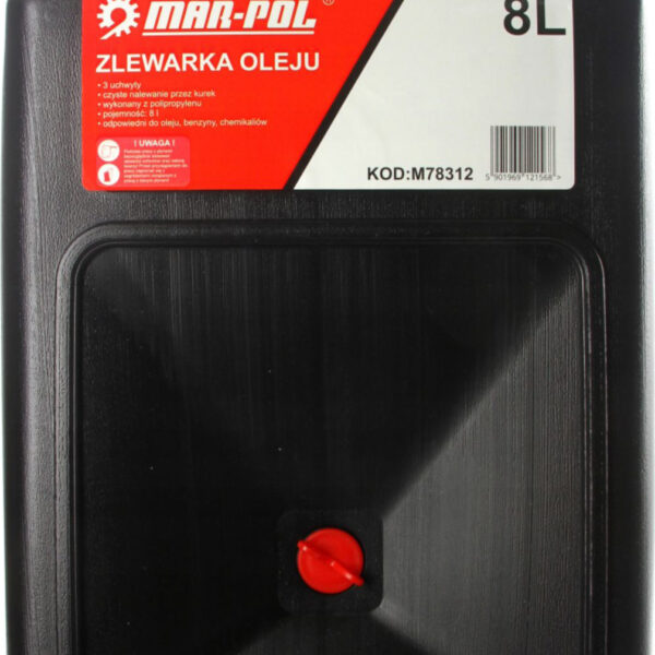 ZLEWARKA OLEJU 8L Z KORKIEM MARPOLZlewarka 8L do zlewania oleju samochodowego.Idealna do prac warsztatowych.Bardzo lekki pojemnik zlewowy wykonany z polipropylenu. Przeznaczony do zlewania zużytych płynów eksploatacyjnych oraz olejów.Wyposażona w 3 uchwyty. Czyste i pewne nalewanie przez kurek.DANE TECHNICZNE:Pojemność : 8LMateriał wykonania: polipropylenZastosowanie: do oleju, benzyny, chemikaliówWaga: 2kg