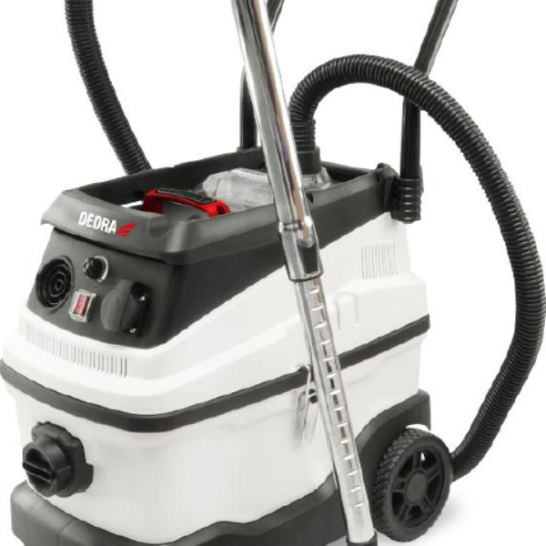ODKURZACZ WARSZTATOWY Z FILTREM WODNYM 1600W 30L DEDRAWielozadaniowy odkurzacz, który sprawdzi się przy odsysaniu pyłu gipsowego, zbieraniu wody i mokrych odpadów, odkurzaniu suchych zanieczyszczeń, a także przy przedmuchiwaniu.Powietrze, które wypływa z odkurzacza jest bezpieczne dla dróg oddechowych osób przebywających w jego otoczeniu. Poza filtrem wodnym odkurzacz posiada klasyczne funkcje, które można spotkać także w innych odkurzaczach warsztatowych. Są to: gniazdo do podłączenia elektronarzędzia, automatyczny start/stop, oczyszczanie filtra czy regulowana moc ssąca. W zestawie także akcesoria przeznaczone do różnych prac porządkowych.CHARAKTERYSTYKA:Odkurzanie na sucho i zbieranie wody.Przystosowany do usuwania wiórów, trocin a także pyłu gipsowego.Wyposażony jest w filtr HEPA.Pokrętło regulacji mocy ssącej.Wydmuch powietrza.Obudowa z wytrzymałego plastiku ABS.Wyposażony w gniazdo do podłączenia elektronarzędzi z automatycznym przełącznikiem włącz/ wyłącz 2,0 kW.Składany uchwyt.Metalowe zapięcia.Małe, wytrzymałe, obrotowe kółka.DANE TECHNICZNE:Moc: 1600WNapięcie zasilania: 220-240V, 50HzPojemność zbiornika: 30 litrówWydatek przepływu powietrza: 200 m3/hMaksymalne obciążenie gniazda: 2000WPrzewód zasilający 5mPodciśnienie: 19 kPaWaga.: 13,8 kgWymiary: 600x755x375mmZESTAW ZAWIERA:Odkurzacz warsztatowy 1600W DEDRAFiltr gąbkowyFiltr HEPAWorki materiałowe (zbiornik górny i dolny)KońcówkiWąż/ruręRurę teleskopowąInstrukcję obsługiOryginalne opakowanie