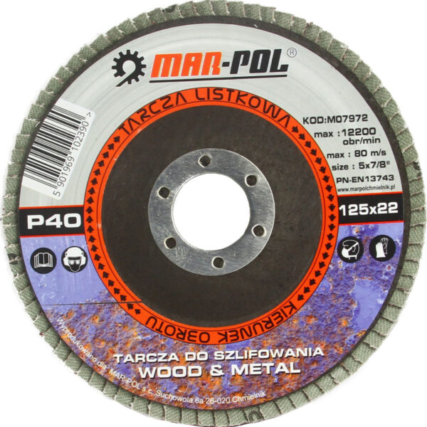 TARCZA LAMELKOWA PIÓRKOWA DO SZLIFOWANIA 125MM P40 MAR-POL
