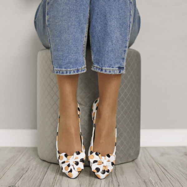 nakrapiane balerinki z ozdobną kokardą - skóra naturalna - model 048 - kolor żółte kropki