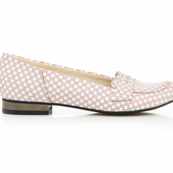 balerinki lordsy - skóra naturalna - model 025 -różowe kwadraty