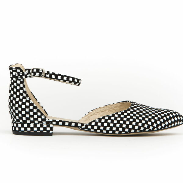 balerinki z paskiem na kostce - skóra naturalna - model 041 -białe kwadraty