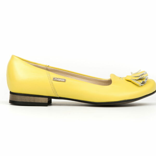 eleganckie głębokie baleriny na obcasie - skóra naturalna - model 009 - kolor bananowy