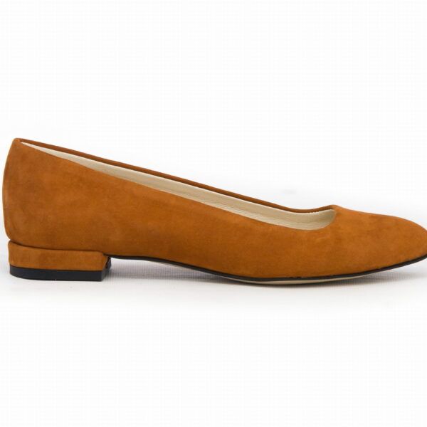 gładkie balerinki na niskim obcasie - skóra naturalna - model 050 - rudy nubuk