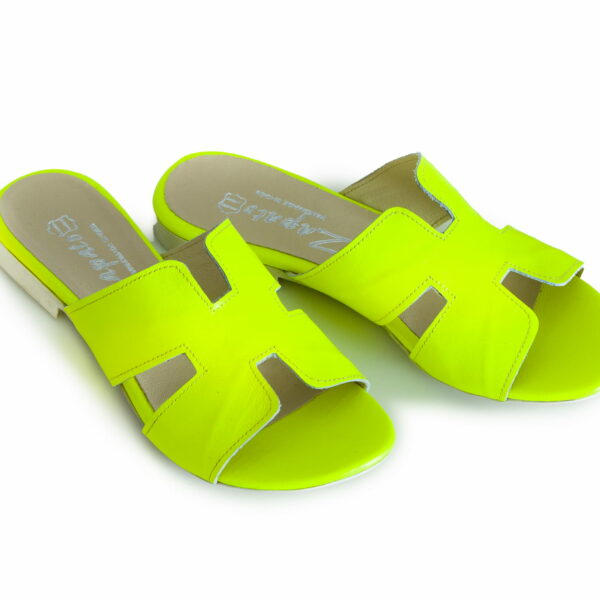 damskie klapki na miękkiej podeszwie - skóra naturalna - model 371 - kolor żółty neon
