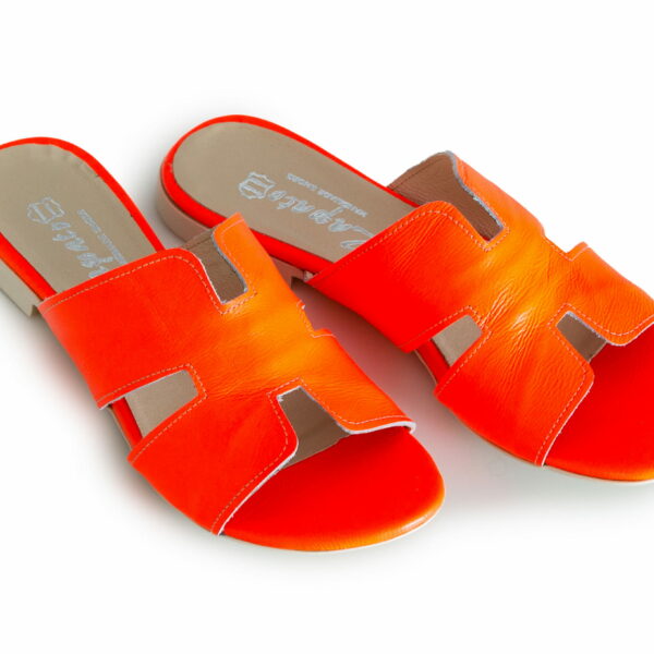 damskie klapki na miękkiej podeszwie - skóra naturalna - model 371 - kolor pomarańczowy neon