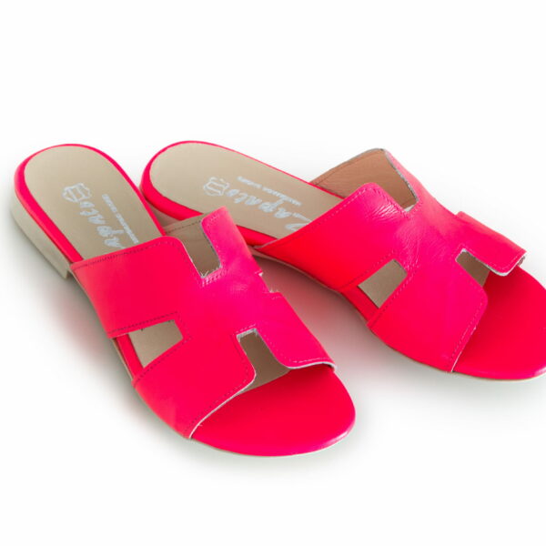 damskie klapki na miękkiej podeszwie - skóra naturalna - model 371 - kolor różowy neon