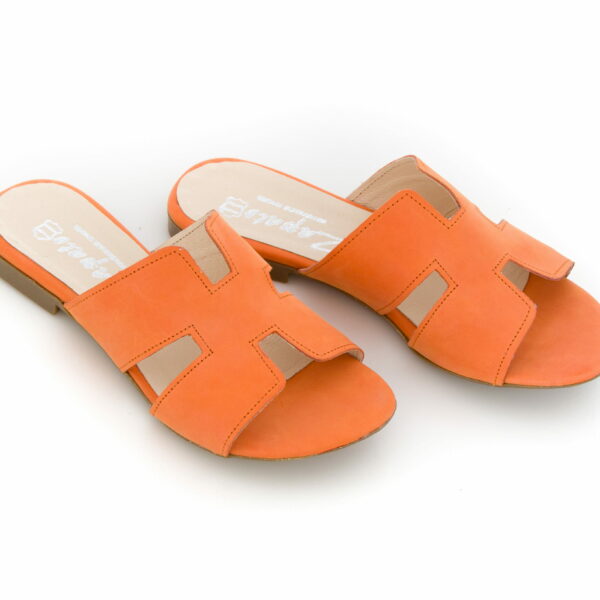 damskie klapki na miękkiej podeszwie - skóra naturalna - model 371 - kolor dyniowy