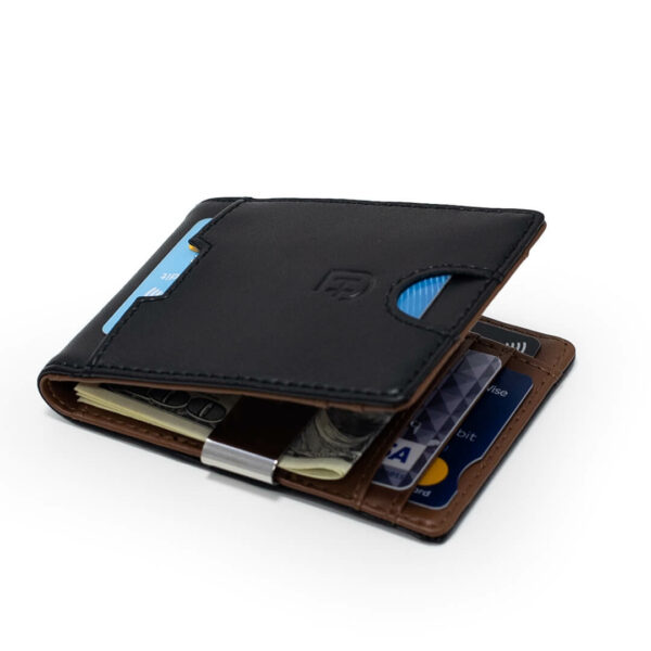 Męski skórzany portfel slim z RFID elegancki czarny brązowy na karty monety bilon gotówkę na prezent naturalna skóra James Hawk Smart Wallet