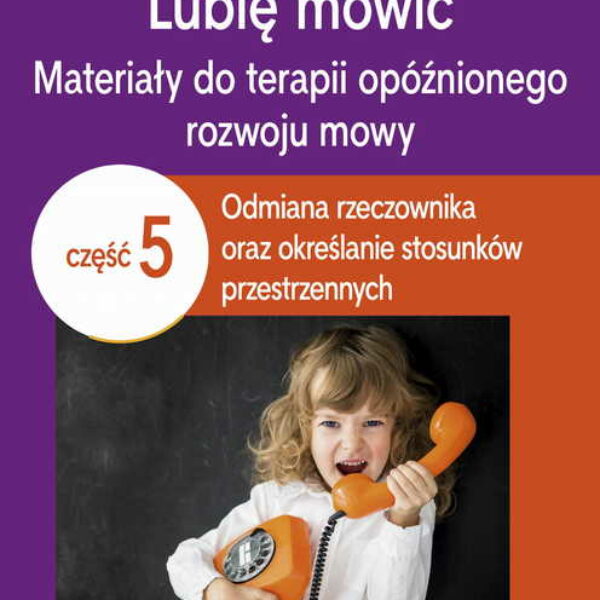 Książka Lubię mówić. Materiały do terapii opóźnionego rozwoju mowy. Część 5: odmiana rzeczownika oraz określanie stosunków przestrzennych przeznaczona jest do pracy z dziećmi:z opóźnionym rozwojem mowy,z afazją,ze spektrum autyzmu.Lubię mówić. Materiały do terapii opóźnionego rozwoju mowy, część 5Książka Lubię mówić. Materiały do terapii opóźnionego rozwoju mowy. Część 5 obejmuje materiał z ćwiczeniami dotyczącymi odmiany rzeczownika oraz określania, nazywania stosunków przestrzennych, typu: „w”, „za”, „przed”, „nad”, „pod”, „do”.Publikację można także wykorzystać jako pomoc w nauczaniu języka polskiego dla obcokrajowców.Z publikacji mogą korzystać zarówno logopedzi, terapeuci, jak i rodzice.