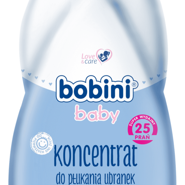Bobini Baby Hypoalergiczny Koncentrat Do Płukania Ubranek Dziecięcych 1LHypoalergiczny koncentrat do płukania ubranek niemowlęcych i dziecięcych Bobini Baby został przygotowany w trosce o delikatną i wrażliwą skórę niemowląt - zawiera łagodne, wysokiej jakości składniki oraz zapobiegający podrażnieniom skóry wyciąg z aloesu.Posiada delikatną kompozycję zapachową i może być stosowany powyżej 1 miesiąca życia.Polecany jest również do płukania odzieży osób o skórze wrażliwej. Produkt został przebadany dermatologicznie. Nie zawiera barwników.