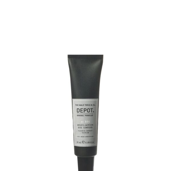 Depot 804 Multi-action eye contour cream-serum czyli Wielofunkcyjne serum w kremie pod oczy.Stworzony w celu zmniejszenia oznak zmęczenia wokół oczu i spowolnienia oznak starzenia się, dla młodszego i świetlistego spojrzenia. Okolice oczu to obszar w którym skóra jest najcieńsza, to miejsce które starzeje się najszybciej. To właśnie pod oczami łatwo można zaobserwować u mężczyzny oznaki zmęczenia, odwodnienia czy pierwszych zmarszczek. Właśnie dlatego tak ważna jest pielęgnacja tego obszaru.Jak to działa?skoncentrowane działanie przeciw opuchliźnie i podkrążonym oczomzmniejsza widoczność oznak zmęczeniarozjaśnia obszar wokół oczuSkładniki aktywne:Ekstrakt z planktonu, przeciwdziała zanikaniu kolagenu i elastyny, zwalcza oznaki zmęczenia wokół oczu, dając promienność, jędrność i gładkość skórze.Kofeina, stymuluje mikrokrążenie, przeciwdziała zatrzymywaniu się wody, dzięki czemu zapobiega opuchnięciom pod oczami.Składnik aktywny pozyskiwany z baobabu, specjalnie opracowany dla męskiej skóry, poprawia elastyczność i odcień, nadając skórze świeży i młody wygląd.Wyciąg z liści winorośli działa antystresowo i wygładza skóręWyciąg z owoców granatu chroni i odżywia skóręWitamina E działa jako naturalny antyoksydantPojemność: 20mlSposób użycia: Zaaplikuj delikatnie na obszar wokół oczu rano i/lub wieczorem. Delikatnie wklep za pomocą opuszków do całkowitego wchłonięcia poprawiając penetrację produktu i mikrokrążenie skóry.