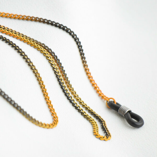 Interesujący łańcuszek w dwóch kolorach - złotym i niebieskim. Lekki i wytrzymały, wyjątkowo wygodny podczas noszenia. To ciekawe rozwiązanie dla osób ceniących nieszablonowe pomysły i design.Długość: 70 cm