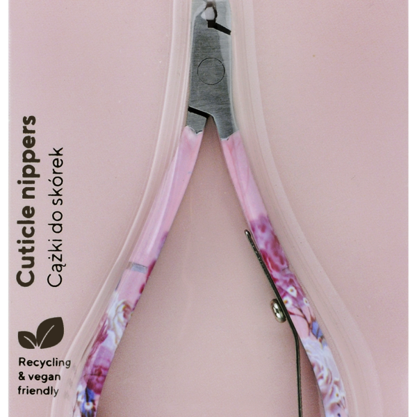 Inter-Vion KillyS Blooming Pastel Kwiatowe Cążki Do Skórek Blooming Pastel to kolekcja akcesoriów kosmetycznych nawiązująca swą szatą graficzną do pastelowej odsłony kwiatowych trendów. Seria została stworzona z myślą o kobietach kochających piękno natury, ceniących estetykę oraz proekologiczne podejście do życia.Inter-Vion Killys cążki do skórek bezpieczne i ostre ostrza zapewniają maksymalną precyzję cięcia pozostawiając skórki gładkie, bez ryzyka uszkodzenia płytki paznokcia. Praktyczne, wyprofilowane rączki sprawiają, że manewrowanie cążkami podczas manicure jest łatwiejsze i bardziej wygodne. Modny kwiatowy wzór na rączkach w pastelowej odsłonie urozmaici każdy zabieg manicure.
