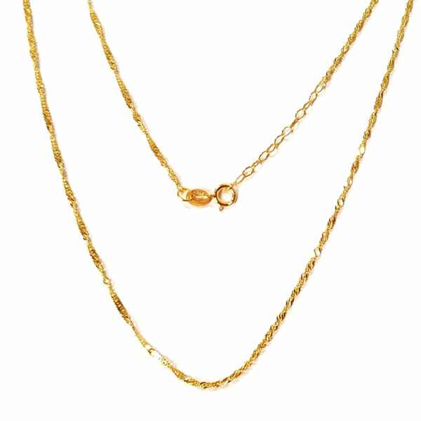 Złoty łańcuszek o splocie typu singapur. Długość łańcuszka to 45 centymetrów.