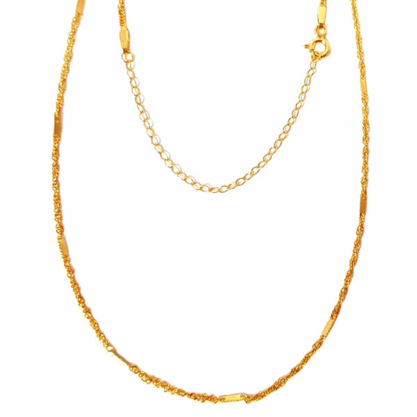 Złoty łańcuszek z blaszkami. Długość 42-50 cm, szerokość 1 mm.