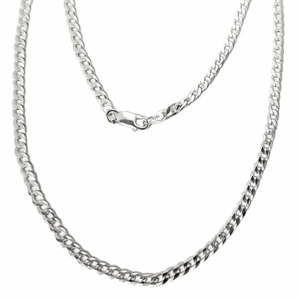 Srebrny łańcuszek pancerka. Długość 49,5 cm, szerokość 3 mm.