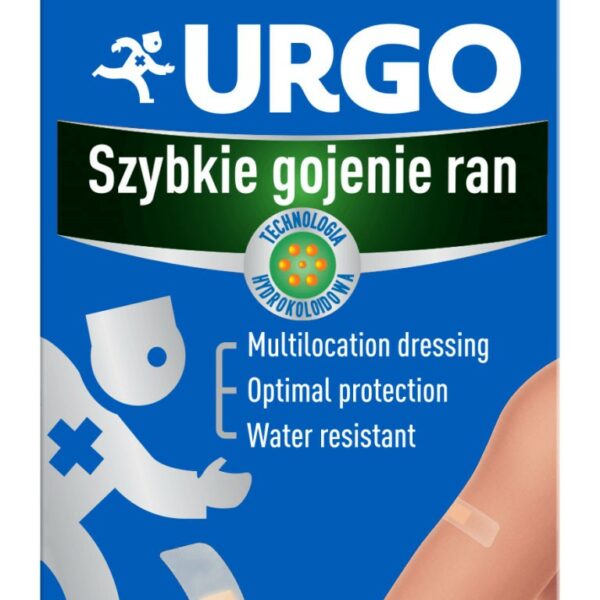 URGO Szybkie Gojenie Ran to samoprzylepne opatrunki, składające się z przezroczystego podłoża oraz kompresu hydrokoloidowego.Transparentne podłoże opatrunku jest nieprzepuszczalne dla wody, ergonomiczne, wyjątkowo cienkie, chroni przed uciskiem i otarciami.Opatrunek zapewnia dyskretną ochronę i dopasowuje się do miejsca ranyHydrokoloidowy kompres – zabezpiecza, tworzy środowisko korzystne dla szybkiego gojenia, a także umożliwia bezbolesne usuwanie opatrunku.Wodoodporny.POJEMNOŚĆ: 8 sztukWSKAZANIA:Opatrunek jest przeznaczony do stosowania na rany powierzchniowe (skaleczenia, zadrapania) po ustaniu krwawienia. Opatrunek przeznaczony jest dla osób dorosłych i dzieci w wieku powyżej 12 lat (młodsze dzieci mogą stosować opatrunek pod nadzorem rodziców lub osób dorosłych).SPOSÓB UŻYCIA:1. Oczyścić i zdezynfekować ranę roztworem antyseptycznym, który nie zawiera alkoholu. Zatamować możliwe krwawienie i osuszyć ranę za pomocą sterylnego gazika.2. Otworzyć saszetkę i wyjąć opatrunek. Opatrunek ogrzać w dłoniach, aby ułatwić jego formowanie3. Zdjąć pierwszą osłonę ochronną, unikając dotykania palcami środkowej części plastra i umieścić opatrunek hydrokoloidowy centralnie na ranie. Rana musi być całkowicie przykryta kompresem hydrokoloidowym (część środkowa).4. Zdjąć drugą osłonę, jednocześnie wygładzając i przyciskając krawędzie opatrunku, aby poprawić przyleganie.OPAKOWANIE:5 opatrunków 20 x 74 mm i 3 opatrunki 40 x 72 mm.OSTRZEŻENIA: Nie rozciągać opatrunku podczas nakładania, nie przecinać. Opatrunek do jednorazowego użytku: nie zmieniać położenia już nałożonego opatrunku, nie używać ponownie tego samego opatrunku (ryzyko zakażenia). W razie pozostania kleistych pozostałości hydrokoloidu na skórze zalecane jest namoczenie w wodzie. Nie stosować opatrunki ani nie usuwać już zastosowanego opatrunku i zasięgnąć porady lekarza: - jeżeli stan rany pogarsza się lub jeśli nie ma poprawy po 6 dniach stosowania, - w obecności objawów zakażenia (zaczerwienienie, ból, uczucie gorąca, obrzęk wokół rany, ropa itp.), - w razie jakichkolwiek wątpliwości lub dyskomfortu. Pacjenci z cukrzycą powinni stosować opatrunki hydrokoloidowe wyłącznie pod kontrolą lekarza lub pielęgniarki. W przypadku jakichkolwiek ran zlokalizowanych na twarzy należy zasięgnąć porady lekarza ze względów estetycznych. Nie używać opatrunków dłużej niż przez kolejne 30 dni.Przed użyciem zapoznaj się z treścią ulotki dołączonej do opakowania bądź skonsultuj się z lekarzem lub farmaceutą, gdyż każdy preparat niewłaściwie stosowany zagraża Twojemu życiu lub zdrowiu.