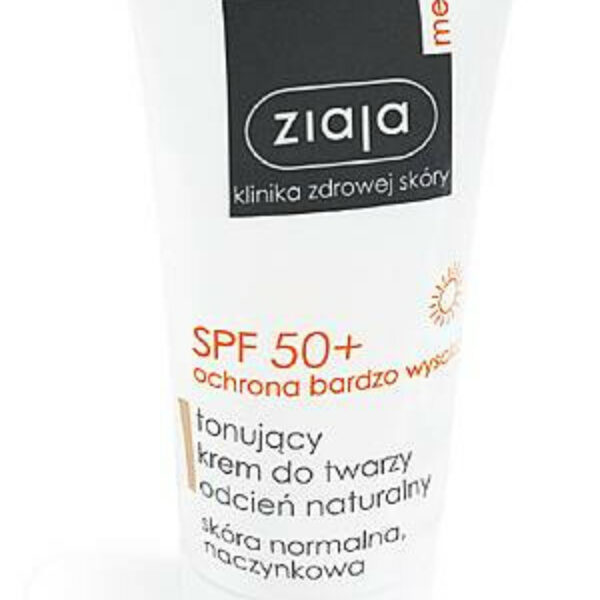 Tonujący krem do twarzy, SPF 50+ - przeznaczony do ochrony przeciwsłonecznej cery normalnej i naczynkowej. Odcień naturalny.POJEMNOŚĆ: 50 mlZASTOSOWANIE:Ochrona przeciwsłoneczna skóry normalnej, naczynkowej, z przebarwieniami.Skóra łatwo ulegająca poparzeniom słonecznym oraz reakcjom fotouczulającym, skóra z ze zmianami barwnikowymi.Polecany przy leczeniu dermatologicznym oraz po zabiegach medycyny estetycznej.Do stosowania przy ekstremalnym nasłonecznieniu, również dla osób aktywnie uprawiających sporty.Od 17 roku życia.SPOSÓB UŻYCIA:Codzienne: krem tonujący, Ziaja Med nanieść na skórę twarzy, szyi i dekoltu, delikatnie wklepać. Stosować na dzień.W czasie opalania: nanieść obfitą ilość emulsji na odsłoniętą powierzchnię ciała 15 minut przed wyjściem na słońce. Używać kilkakrotnie w czasie przebywania na słońcu, zwłaszcza po intensywnej kąpieli, wytarciu ręcznikiem oraz spoceniu się.SKŁAD:Aqua (Water), Diethylamino Hydroxybenzoyl Hexyl Benzoate, Elhylhexyl Methoxycinnamate, Bis-Ethylhexyloxyphenol Methoxyphenyl Triazine, Polymethyl Methacrylate, C12-1B Alkyl Benzoate, Cyclomethicone, Glycerin, Triethylhexanoin, Dimethicone, Potassium Cetyl Phosphate, Titanium Dioxide, Ethylhexyl Triazone, Cetyl Alcohol, Glyceryl Stearate, PEG-100 Stearate, Hydrogenated Dimer Dilinoleyl/Dimethylcarbonate Copolymer, Panthenol, Tocopheryl Acetate, Xanthan Gum, Carbomer, DMDM Hydantoin, Methylparaben, Elhylparaben, Parfum (Fragrance), Citronellol, Limonene, Cl 77492, Silica, Cl 177491, Cl 77499.