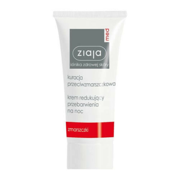 Ziaja Med krem redukujący przebarwienia na noc - przeznaczony do codziennej pielęgnacji skóry z oznakami starzenia. Redukuje głębokość zmarszczek oraz niweluje przebarwienia.POJEMNOŚĆ:50mlZASTOSOWANIE:Pielęgnacja skóry dojrzałej, ze zmarszczkami. Dla osób dorosłych, w wieku 30+. Dla kobiet i mężczyzn.- bogata emulsja regenerująca na bazie ekologicznych składników,- rozjaśnia przebarwienia,- zmniejsza nierównomierną pigmentację,- reguluje proces melanogenezy,- przyczynia się do zredukowania głębokości zmarszczek,- poprawia jędrność skóry oraz sprawia, że staje się gładka w dotyku,- wzmacnia włókna kolagenu I, II, IV oraz elastyny,- dogłębnie nawilża oraz zapobiega przeznaskórkowej utracie wody,- uzupełnia niedobór naturalnych substancji odżywczych,- zapewnia regenerację naskórka oraz łagodzi podrażnienia.SPOSÓB UŻYCIA:Krem redukujący przebarwienia na noc, Ziaja Med nanieść na skórę twarzy, szyi i dekoltu. Następnie delikatnie wklepać.SKŁAD:Składniki aktywne:Olej canola - bogaty w witaminę E i fitosterole. Ma właściwości przeciwzapalne i łagodzące. Niweluje wolne rodniki, zapobiega transepidermalnej utracie wody oraz długotrwale nawilża.Ekstrakt z mandarynki japońskiej - zawiera tyraminę, składnik o działaniu rozjaśniającym skórę. Jest inhibitorem tyrozynazy dzięki czemu ogranicza aktywność barwnika skóry - melaniny. Oligopeptydy (mikro-kolagen) - stymulują syntezę kolagenu, elastyny i polisachaydów. Wzmacniają struktury białkowo-lipidowe skóry. Zapobiegają wiotczeniu naskórka oraz poprawiają jego napięcie. Opóźniają proces starzenia skóry oraz niwelują powierzchniowe oraz głębokie zmarszczki.Panthenol - działa nawilżająco, uelastyczniająco i zmiękczająco. Łagodzi podrażnienia naskórka.Witamina C - wspomaga syntezę kolagenu dzięki czemu opóźnia procesy starzenia się skóry. Niweluje niewielkie zmarszczki oraz poprawia koloryt skóry. Dodatkowo wzmacnia naczynia krwionośne i stymuluje lepsze ukrwienie.Aqua (Water), Cetearyl Ethylhexanoate, Hexyl Laurate, Glycerin, Canola Oil, Citrus Unshiu Peel Extract, Cetyl PEG/PPG-10/1 Dimethicone, Cyclopentasiloxane, Hydrogenated Coco-Glycerides, Sorbitan Sesquioleate, Panthenol, Hydrolyzed Rice Protein, Magnesium Sulfate, Propylene Glycol, Ascorbyl Palmitate, Lecithin, Ascorbic Acid, Hydrogenated Castor Oil, Cera Alba (Beeswax), Diazolidinyl Urea, Sodium Benzoate, Citric Acid.Produkt testowany dermatologicznie i alergologicznie. Hypoalergiczny. Bez kompozycji zapachowej.