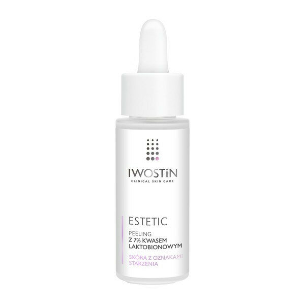 Peeling z 7% kwasem laktobionowym.POJEMNOŚĆ: 30mlZASTOSOWANIE:Peeling z 7% kwasem laktobionowym Iwostin EsteticProfesjonalna kuracja przeciwzmarszczkowa dla skóry wrażliwej z oznakami starzenia się, zarówno z pierwszymi zmarszczkami mimicznymi, jak i głębokimi.Daje efekt delikatnego złuszczenia.Poprawia elastyczność i koloryt skóry.Redukuje ilość i głębokość zmarszczek oraz przebarwienia skórne.Przywraca świeży wygląd oraz poprawia elastyczność skórySkładniki aktywne:Kwas laktobionowy 7%, aktywny was nowej generacji , dzięki działaniu złuszczającemu wzmacnia barierę naskórkową i wspomaga proces odnowy komórkowej naskórkaRegenie, kompleks naturalnych ekstraktów z owoców, złuszcza, wygładza i nawilża, dzięki czemu wspomaga proce odnowy naskórka.Actopontine wspomaga utrzymanie prawidłowej gęstości, elastyczności i napięcia skóry. Zapewnia młody i świeży wygląd.SPOSÓB UŻYCIA:Nanieść niewielką ilość produktu, 1 raz dziennie, wieczorem na oczyszczoną skórę twarzy, omijając okolicę oczu i ust.Po wchłonięciu nałożyć Iwostin Perfectin Re-liftin rewitalizujące serum.Stosować codziennie przez 2 tygodnie, następnie 1-2 razy w tygodniu.SKŁAD:Aqua, Lactobionic Acid, Glycerin, Betaine Monohydrate, Hydroxyethylcellulose, Tartaric Acid, Pyrus Malus (Apple) Fruit Extract, Citrus Medica Limonum Extract, Citric Acid, Hydrolyzed Grape Skin, Hydrolyzed Wheat Bran, Butylene Glycol, sh-Hexapeptide-2, Phenoxyethanol, Ethylhexylglycerin, Sodium Benzoate, Potassium Sorbate, Disodium EDTA, Sodium Hydroxide,