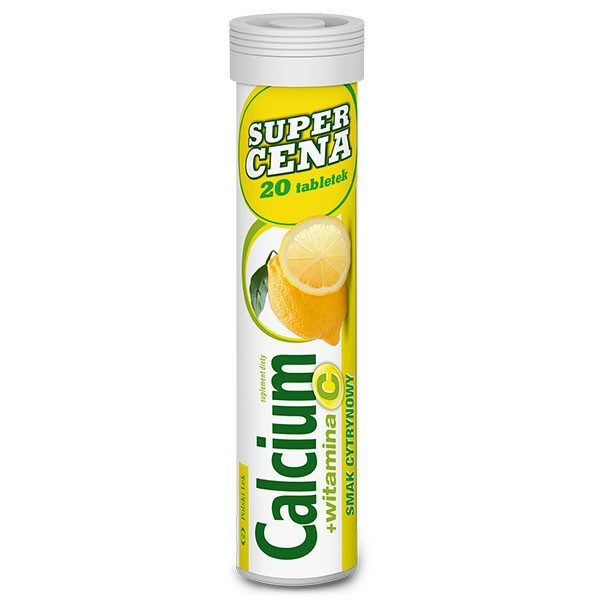 Calcium + witamina C to tabletki musujące o smaku pomarańczowym. Witamina C pomaga w prawidłowym funkcjonowaniu układu odpornościowego, wapń przyczynia się do utrzymania prawidłowego metabolizmu energetycznego.POJEMNOŚĆ: 20 tabletek musujacychZASTOSOWANIE:Suplementacja diety w składniki aktywne preparatu.DAWKOWANIE:Zaleca się spożywać 1 tabletkę dziennie, wrzucić do szklanki zimnej wody.SKŁAD:Regulator kwasowości: kwas cytrynowy, węglan wapnia, regulator kwasowości: węglan sodu, substancja wypełniająca: sorbitol, witamina C (kwas L-askorbinowy), aromaty, substancja przeciwzbrylająca: glikol polietylenowy, barwnik: karoteny, substancje słodzące: acesulfam K, aspartam, proszek buraczany, proszek pomarańczowy 0,1%.1 tabletka zawiera: wapń 300mg (37,5%)*, witamina C 60mg (75%)*.*RWS - Referencyjna wartość spożycia.WAŻNE INFORMACJE:Nie należy przekraczać zalecanej dziennej porcji. Suplement diety nie może być stosowany jako substytut (zamiennik) zróżnicowanej diety. Zrównoważony sposób żywienia i prawidłowy tryb życia jest ważny dla funkcjonowania organizmu człowieka. Preparat należy przechowywać w suchym miejscu, w temperaturze poniżej (25°C), w sposób niedostępny dla małych dzieci. Zawiera źródło fenyloalaniny. Może być stosowany przez diabetyków. Produkt może zawierać śladowe ilości laktozy (z mleka). Zawiera substancje słodzące: acesulfam K, aspartam (źródło fenyloalaniny).