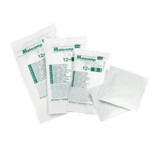 Kompresy MATOCOMP gaza jałowa 17 nit.12 wars. 9x9cmPOJEMNOŚĆ: 5 sztukDZIAŁANIE:wykonane ze 100% bawełnybielone metodą bezchlorową, co gwarantuje wysoki poziom czystości chemicznejpozbawione luźnych włókien na powierzchni kompresu, dzięki czemu podwyższone zostaje bezpieczeństwo użytkowaniazabezpieczone w sposób uniemożliwiający wyprucie luźnej nitki kompresuduża zdolność wchłaniania wilgoci i płynówmożliwość sterylizacjiWSKAZANIA:Kompresy z gazy opatrunkowej stosowane do pochłaniania płynów w trakcie zabiegów ambulatoryjnych i operacyjnych w przypadku ich jałowości oraz do celów higieniczno-kosmetycznych w przypadku ich wyjałowienia.W praktyce lekarskiej:dla pielęgniarek i lekarzy wykonujących zabiegi diagnostyczne z udziałem płynów ustrojowych oraz krwi.W opiece długoterminowej:dla opiekunów do pochłaniania płynów, wilgoci i krwi przy zmianie opatrunku.W kosmetyce:dla kosmetyczek do celów higieniczno-kosmetycznych oraz do przemywania ciała po zabiegu.W domu:dla dorosłych i dzieci, do przemywania i opatrywania ran, skaleczeń i otarć oraz jako wkład chłonny zabezpieczający wilgotną ranę.OSTRZEŻENIA: Przed użyciem zapoznaj się z treścią ulotki dołączonej do opakowania bądź skonsultuj się z lekarzem lub farmaceutą, gdyż każdy preparat niewłaściwie stosowany zagraża Twojemu życiu lub zdrowiu.