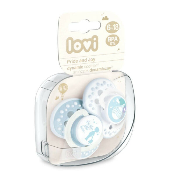 Dynamiczny smoczek uspokajający LOVI został stworzony we współpracy z neurologopedami. Ma unikalną budowę z niejednorodnego silikonu i symetryczny kształt inspirowany brodawką sutkową. Nie zaburza odruchu ssania i naturalnego rozwoju mowy i zgryzu.