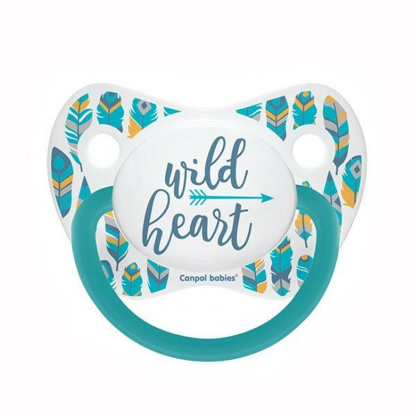 Smoczek uspokajający WILD NATURE wykonany z najwyższej jakości, bezzapachowego silikonu. Wyposażony w gumkę o anatomiczny kształcie. Zapewnia swobodne oddychanie i połykanie śliny. Smoczek dobrze odpowietrza się, dzięki specjalnym otworom wentylacyjnym na tarczce. Nie zawiera BPA. Dostępny w kilku kolorach. Przeznaczony dla dzieci w wieku 0-6 miesięcy.
