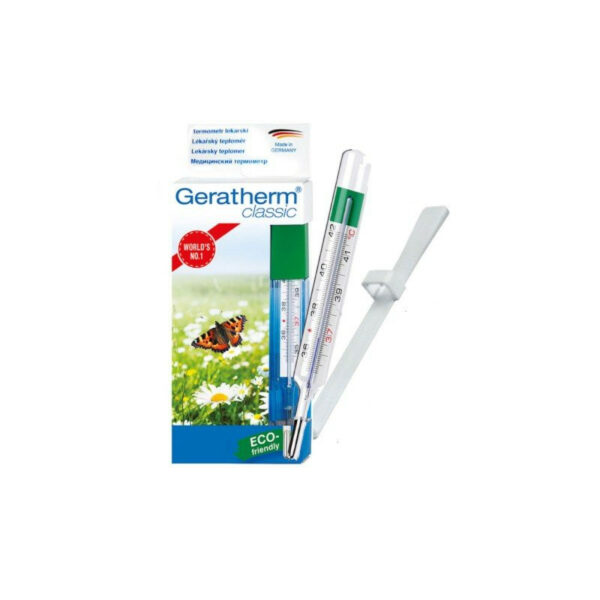 Termometr Geratherm Classic to produkt dla osób, które cenią sobie proste, klasyczne rozwiązania. Jest bezpieczny, gdyż nie zawiera rtęci. Została ona zastąpiona galinstanem - płynnym metalem z galu, indu oraz cyny.Cechy produktu:Tradycyjny pomiar temperatury: doustnie, doodbytniczo lub pod pachąZawiera bezpieczną substancję pomiarowąWodoodpornyPosiada wieczystą gwarancjęW zestawie znajduje się strzepywaczkaDane techniczne:Minimalny zakres pomiaru: 35,5°C do 42,0°CRozdzielczość: 0,1°CDokładność pomiaru: +0,1°C/-0,15°CWarunki przechowywania: 15°C do 42,0°C