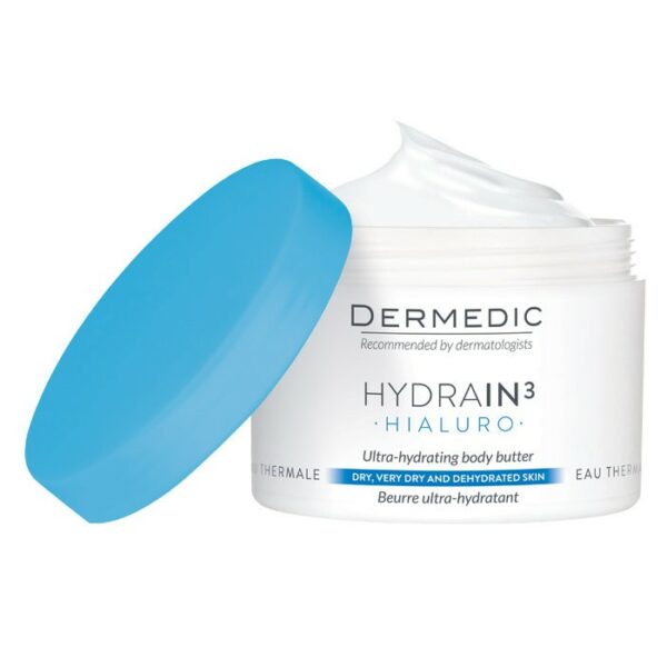 DERMEDIC Hydrain3 Masło ultranawadniające 225mlPOJEMNOŚĆ: 225mlZASTOSOWANIE:Zalecane do pielęgnacji skóry całego ciała, w tym skóry bardzo suchej, szorstkiej i łuszczącej się.Dogłębnie i długotrwale nawilżaZapewnia natychmiastową ulgę i redukuje odczucie ściągnięciaPrzywraca prawidłowe funkcjonowanie bariery ochronnej naskórkaHypoalergicznePrzebadane klinicznieZ wodą termalnąSPOSÓB UŻYCIA:Nanieść równomiernie na skórę cienką warstwę preparatu i pozostawić do wchłonięcia.SKŁAD:Kompleks Aqualare: (kwas hialuronowy + woda termalna + trehaloza), Gliceryna, Olej kokosowy, Masło shea, Masło kakaowe, Olej migdałowy, Witamina E