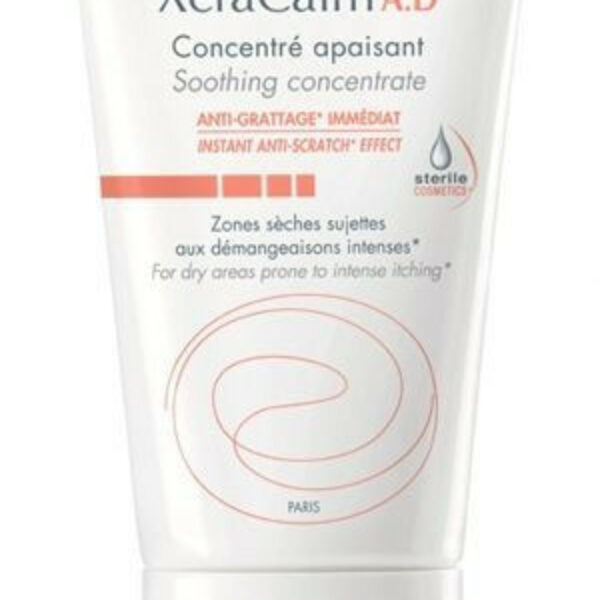 Avene XeraCalm A.D koncentrat kojący stosowany na suche obszary skóry ze skłonnością do intensywnego swędzenia i wyprysku atopowego. Nie zawiera konserwantów oraz substancji zapachowych. Sterylny kosmetyk.POJEMNOŚĆ: 50mlZASTOSOWANIE:Produkt opracowany tak, aby zminimalizować ryzyko wystąpienia reakcji alergicznych. Nie powoduje powstawania zaskórników.SPOSÓB UŻYCIA:Stosować w przypadku pojawienia się intensywnego i zlokalizowanego miejscowo uczucia swędzenia (4 razy dziennie). Produkt przeznaczony wyłącznie do użytku zewnętrznego.SKŁAD:Avene Thermal Spring Water (Avene Aqua), Caprylic/Capric Triglyceride, Glycerin, Cetearyl Alcohol, Aquaphilus Dolomiae Extract, Arginine, Cetearyl Glucoside, Cetyl Alcohol, Citric Acid, Evening Primrose Oil, Palm Oil Aminopropanediol Esters, Glyceryl Stearate, Glycine, Oenothera Biennis (Evening Primrose) Oil (Oenothera Biennis Oil), PEG-100 Stearate, Polyacrylate-13, Polyisobutene, Polysorbate 20, Sorbitan Isostearate, Tocopherol, Tocopherol Acetate, Water (Aqua).
