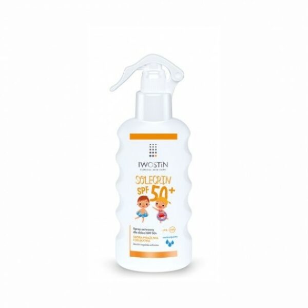 Iwostin Solecrin Spray ochronny dla dzieci SPF 50+ POJEMNOŚĆ: 175mlZASTOSOWANIE: Iwostin Solecrin Spray ochronny dla dzieci SPF 50+ przeznaczony jest do codziennej ochrony i pielęgnacji skóry wrażliwej i delikatnej. Bezzapachowa formuła preparatu jest łatwa i przyjemna w aplikacji.SPOSÓB UŻYCIA:Spray do opalania należy nałożyć obficie na całą powierzchnię skóry na co najmniej 15 min przed ekspozycją na słońce. Należy pamiętać, że mniejsza ilość produktu może znacznie obniżyć poziom ochrony przed promieniowaniem UVA i UVB. Aplikację sprayu Iwostin do opalania najlepiej powtarzać co 2 godziny lub każdorazowo w przypadku spocenia się, pływania lub wytarcia ręcznikiem. Dzięki temu ochrona przed słońcem będzie utrzymana.Powinno się unikać nadmiernej ekspozycji na słońce, gdyż może być ona zagrożeniem dla zdrowia. Produktu nie powinno się rozpylać bezpośrednio na twarz, a przed kontaktem z ubraniami należy poczekać do wyschnięcia preparatu.SKŁAD:Aqua, C12-15 Alkyl Benzoate, Methylene Bis-Benzotriazolyl Tetramethylbutylphenol (nano), Ethylhexyl Salicylate, Bis-Ethylhexyloxyphenol Methoxyphenyl Triazine, Diethylamino Hydroxybenzoyl Hexyl Benzoate, Ethylhexyl Triazone, Glycerin, Propanediol, Diglycerin, Canola Oil, Myristyl Myristate, Potassium Cetyl Phosphate, VP/Eicosene Copolymer, 1,2-Hexanediol, Decyl Glucoside, Tocopheryl Acetate, Polyglycerin-3, Polyglycerin-4, Xanthan Gum, Carbomer, Citric Acid, Propylene Glycol, Potassium Sorbate.