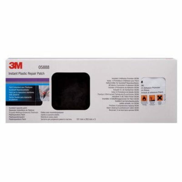 Zestaw naprawczy do kleju do tworzyw EZ Sand Flexible Parts 3M 05888. Skład zestawu:6 elastycznych podkładek / łat w kolorze czarnym 101,6 x 203 mm.6 ściereczek nawilżonych promotorem przyczepności. Produkt kompatybilny i dedykowany do kleju EZ Sand Flexible Parts 3M 05887. Zestaw zawiera wzmacniające, elastycze, samoprzylepne podkładki służące do wzmocnienia naprawianego elementu. Łaty nie wymagają szlifowania przed aplikacją. Miejsce pod łatę trzeba przetrzeć chusteczką nawilżoną promotorem przyczepności dostępną w zestawie. Po przyklejeniu łaty od razu można przystąpić do dalszych prac.Produkt wykazuje bardzo dobrą przyczepność do większości tworzyw sztucznych. Idealny do wzmocnienia pękniętych zderzaków, czy innych elementów elastycznych wykonanych z tworzyw sztucznych w których wymagane jest wzmocnienie. Przykładowe zastosowanie produktu w procesie naprawy zderzaka.