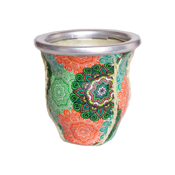 Oryginalne, szklane matero wykonane w Ameryce Południowej o pojemnosci ok. 180-190 ml. Z zewnątrz materko obszyte jest tkaniną z orientalnymi wzorami. Dzięki niej matero nie nagrzewa się, ale też sprawia, że napar dłużej trzyma pożądaną temperaturę.Matero jest łatwe w użyciu i utrzymaniu czystości. Uwaga! Wzór obicia może się delikatnie różnić od prezentowanego na zdjęciu.