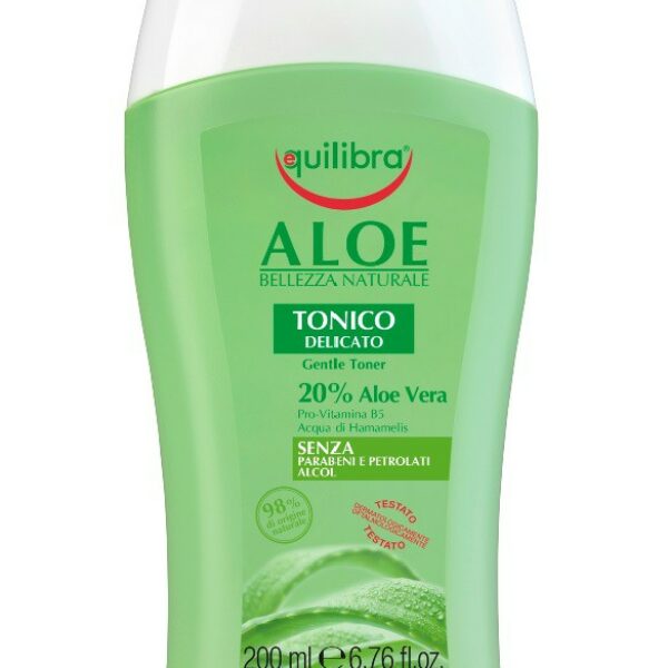 Equilibra Aloe Tonico Aloesowy Tonik Do Twarzy 200MLTonik bezalkoholowy, o delikatnym działaniu. Gromadzi 20% aloesu, który nawilża, odżywia, odświeża i wygładza skórę, gwarantując jej równowagę. Prowitamina B5 pomaga utrzymać trafny poziom nawilżenia i działa ochronnie.Nie wymaga spłukiwania, pozostawia skórę gładką i wyrównuje jej koloryt.Tonik zastosowany jako ostatni etap demakijażu likwiduje pozostałości wcześniej użytych kosmetyków myjących wraz z ewentualnymi resztkami makijażu i skażeń.Wysokie stężenie aloesu (20%): pozyskiwany ręcznie, ekstrahowany na zimno, niepasteryzowany, bez obróbki chemicznejBogata formuła w komponenty roślinne-gromadzi PRO-Witaminę B5Przeprowadzone testy płatkowe wykazały wysoka tolerancje skóry na ten produktSposób użycia: Nanieś tonik wacikiem na oczyszczoną skórę.