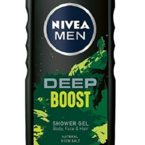 Nivea Men Deep Boost Żel Pod Prysznic Męski 500ML Nivea Men Deep Boost to wyjątkowy żel do mycia ciała, włosów i twarzy dla mężczyzn, wyróżniający się wyjątkowymi składnikami. Żel ten wyposażony został w sól kamienną, która bardzo skutecznie czyści skórę, nawet w najgłębszych jej warstwach. Dzięki temu, nawet z użyciem małych ilości żelu, skóra i włosy będą bardzo dokładnie oczyszczone. Pomimo wysokiej skuteczności, żel jest wyjątkowo łagodny nawet dla cery wrażliwej, może być także używany codziennie przez długi czas. Nivea Deep Boost wyróżnia się także bardzo intensywnym, męskim zapachem, który utrzymuje się na skórze jak również włosach przez bardzo długi czas. Produkt będzie świetnym wyborem dla tych mężczyzn, którzy cenią sobie ekologiczny tryb życia.dokładnie oczyszcza twarz, ciało i włosyzawiera naturalną sól kamiennąposiada przyjemny męski zapachFormuła żelu jest w 99% biodegradowalna, podobnie jak opakowanie produktu, co czyni go w pełni bezpiecznym dla naturalnego środowiska. Nivea Men Deep Boost to produkt stworzony dla nowoczesnych mężczyzn, którzy cenią sobie wysoką skuteczność używanych kosmetyków, ale także łagodność działania.Stosowanie: Żel nanieść na wilgotną skórę, po umyciu spłukać.