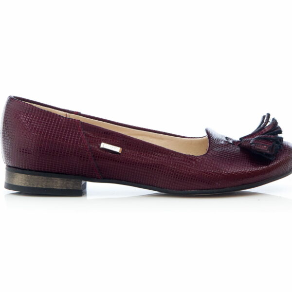 eleganckie głębokie baleriny na obcasie - skóra naturalna - model 009 - bordowy lakier