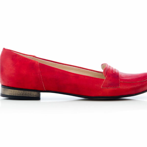balerinki lordsy - skóra naturalna - model 025 - kolor czerwony retro
