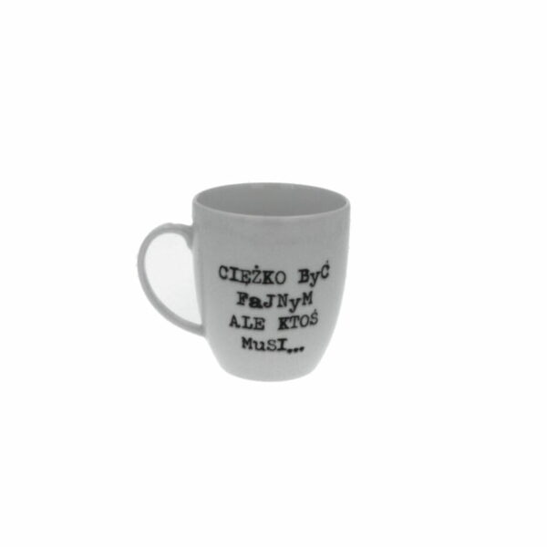 Kubek wykonany z wysokiej jakości porcelany z napisem.