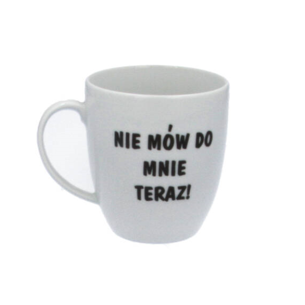 Kubek wykonany z wysokiej jakości porcelany z napisem.