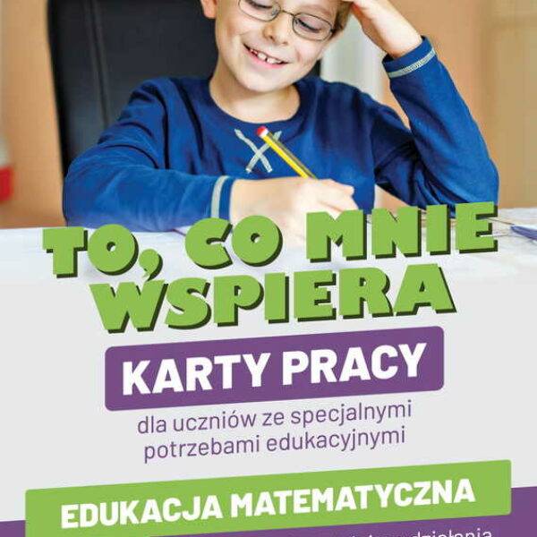 To, co mnie wspiera. Karty pracy dla uczniów ze specjalnymi potrzebami edukacyjnymi to zestaw kart pracy przeznaczonych dla uczniów ze specjalnymi potrzebami edukacyjnymi. To, co mnie wspiera, Wydawnictwo Harmonia – karty pracy dla uczniów ze specjalnymi potrzebami do nauki matematykiPrezentowana publikacja obejmuje treści z zakresu edukacji matematycznej dotyczące nauki liczb do 20 i trudniejszych działań. Zadania zawarte w kartach pracy pomogą uczniom osiągnąć między innymi takie umiejętności jak:rozumienie pojęcia liczby i jej graficznego zapisu za pomocą cyfry;rozumienie pojęcia liczby w różnych aspektach (kardynalnym, porządkowym i algebraicznym);pisanie liczb po śladzie i samodzielnie;rozpoznawanie liczb ukrytych na obrazkach;dodawanie i odejmowanie w zakresie 20.Karty pracy są zgodne z Rozporządzeniem Ministra Edukacji Narodowej z dnia 14 lutego 2017 r. w sprawie podstawy programowej.
