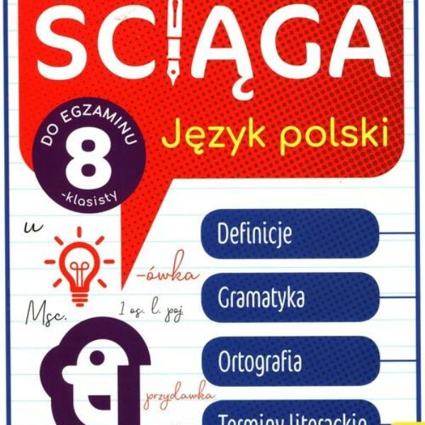 Ściąga do egzaminu 8-klasisty. Język Polski to nieocenione kompendium wiedzy. W ściądze znajdziesz wyłącznie te informacje, które musisz znać przed przystąpieniem do egzaminu. To czytelnie przedstawiona wiedza w pigułce. Nie trać czasu i bierz się za naukę, z tą książką na pewno zdasz ten egzamin!