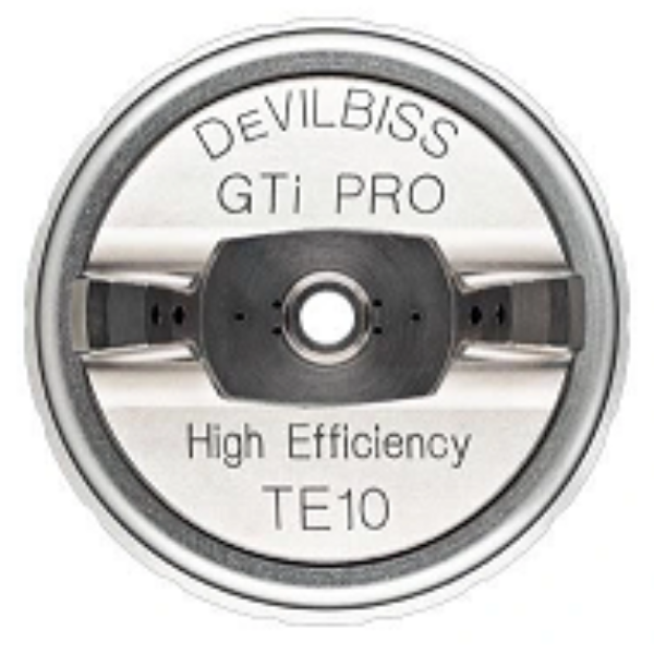 Głowica rozpylająca TE10 do pistoletu Gti Pro Devilbiss PRO-102-TE10-K Głowica rozpylająca Trans-Tech. Kompatybilna z pistoletem lakierniczym DeVilbiss Gti Pro. Dysza o wszechstronnym zastosowaniu. Może być stosowana zarówno do baz wodnych i rozcieńczalnikowych, jak i lakierów bezbarwnych. Rodzaje głowic w pistoletach DeVilbiss Gti Pro: Trans-Tech LVLP (głowice o zredukowanym ciśnieniu - dedykowane do lakierów bezbarwnych, lakierów akrylowych i baz):T110 - dedykowana do nowoczesnych lakierów bezbarwnych i akrylowychTE10 - wszechstronna; może być stosowana zarówno do baz wodnych i rozcieńczalnikowych, jak i lakierów bezbarwnychTE20 - wszechstronna; zapewnia większą aplikację materiału i szybszą pracę niz TE10 HV30 (HVLP) - głowica niskociśnieniowa - dedykowana głównie do baz konwencjonalnych/wodnych