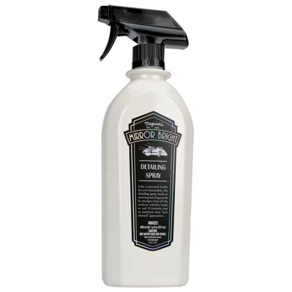 Meguiars Mirror Bright Detailing Spray MB0322 czyści i poprawia połysk 650 ml Mirror Bright Detailing Spray delikatnie czyści zarówno zewnętrzne jak i wewnętrzne powierzchnie. Idealny do usuwania ptasich odchodów, kurzu oraz lekkich zabrudzeń z powierzchni lakieru pomiędzy regularnymi myciami oraz do zachowania czystości wewnątrz auta, w tym przyrządów, wskaźników i ekranów. Jego formuła nie powoduje zarysowań i jest bezpieczna dla wszystkich rodzajów lakierów.