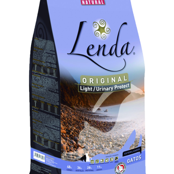 LENDA ORIGINAL CAT LIGHT DLA KOTÓW, OCHRONA UKŁADU MOCZOWEGO Kompletna karma dla kotów z tendencją do nadwagi, problemów z nerkami i / lub sterylizowana.Karma zawiera 34% kurczaka i 10% łososia i ma niską zawartość tłuszczu, aby kontrolować i zmniejszać wagę u sterylizowanych i / lub mało aktywnych kotów. Uzupełniona olejem z łososia, który zawiera duże ilości kwasów Omega 3 i Omega 6, aby promować i stymulować zdrową skórę i lśniącą sierść. Dodane warzywa i zioła lecznicze poprawiają pasaż jelitowy, trawienie i układ odpornościowy. Zawiera również żywność funkcjonalną, która pomaga utrzymać stawy, mięśnie i więzadła w optymalnym stanie.SkładnikiMięso (mięso drobiowe min. 34%), kukurydza, jęczmień, odwodniony łosoś, rafinowany olej drobiowy, hydrolizowany sos z wątróbek drobiowych 4%, ryż 4%, olej z łososia, probiotyki (drożdże piwne - Saccharomyces cerevisiae, źródło manano -oligosacharydy-MOS), cykoria (źródło fruktooligosacharydów FOS), melisa, jukka, rozmaryn, siarczan glukozaminy, siarczan chondroityny, aminokwasy, ekstrakty cytrynowe (źródło naturalnych przeciwutleniaczy), chlorek sodu, bio awonoidy i tauryna.DodatkiDodatki żywieniowe / kg: Pierwiastki śladowe: żelazo 250 mg (jako węglan żelazawy), jod 2 mg (jako jodek potasu), miedź 13 mg (jako pentahydrat siarczanu miedzi), mangan 40 mg (jako tlenek manganu), cynk 140 mg (Gly -Chelat metanu), Selen 0,35 mg (jako selenin sodu). Inne : konserwanty i przeciwutleniacze (ekstrakty z cytrusów i tokoferoli).Składniki analityczneBiałko surowe 28%, Oleje i tłuszcze surowe 11%, Popiół surowy 6,5%, Włókno surowe 4%, Witamina A 18000 IU, Witamina D3 1800 IU, Witamina E (RRR α- tokoferol) 10 mg, Wapń 1,2%, Fosfor 1% , Magnez 0,09%, Tauryna 500 mg, L-Lizyna 250 mg, DL-Metionina 200 mg, Om6 2,4%, Om3 1,1%, Energia metaboliczna 3332,5 kcal / kg.