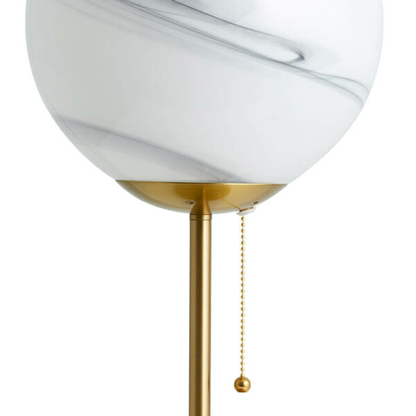 Lampa FAUNA od firmy NORDAL. Posiada ona szklany klosz imitujący marmur oraz metalowy stojak w pozłacanym mosiądzu. FAUNA sprawdzi się idealnie jako dekoracja komody lub stołu. Materiał: szkło, metal Wymiary: średnica 25cm, wysokość 49cm. E27