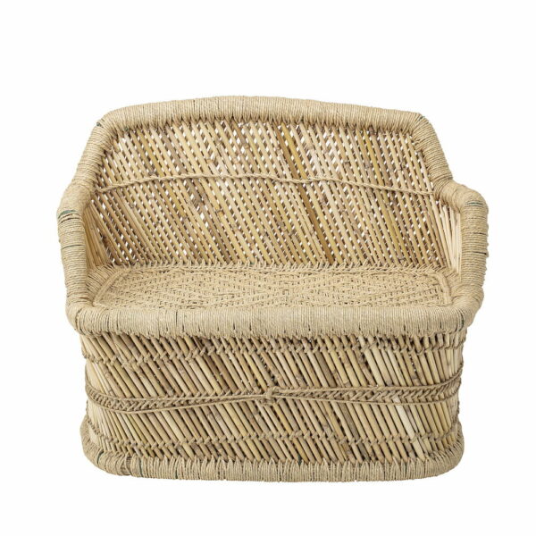 Sofa Natura - Bloomingville, wygodna sofka do pokoju dziecka i dla dziecka! Modny gadżet w pokoju malucha! Materiał: drewno bambusowe. Tkanina siedziska juta.Wymiary: L61xH53xW30 cm Wysokość siedziska: 30 cmGłębokość siedziska: 30 cm Wysokość ramienia: 38 cm Maksymalne obciążenie kg. : 60Instrukcja obsługi: Przecierać czystą wilgotną tkaniną.