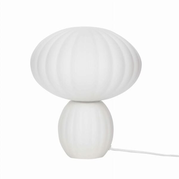 Lampa stołowa szklana biała Opal - Hubsch, piękna, oryginalna lampa wykonana z białego szkła z wżłobieniami. Klasa, styl i ponadczasowe rozwiązanie. Pięknie prezentować się w sypialni, holu, salonie. Materiał: białe szkło Wymiary: ø23xh28cm
