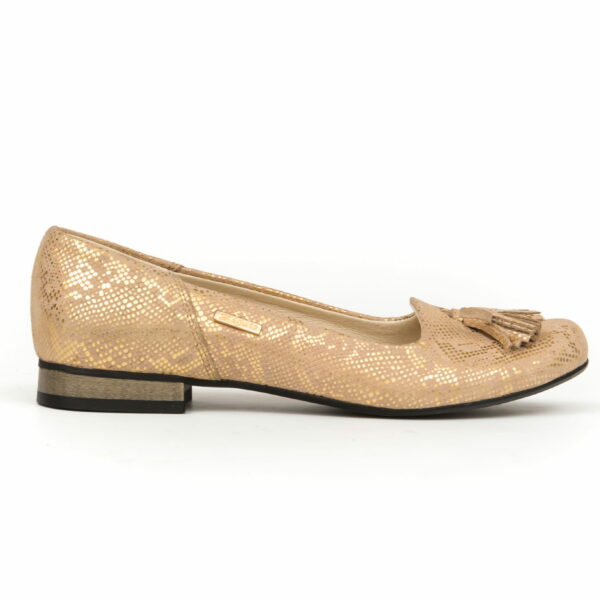 eleganckie głębokie baleriny na obcasie - skóra naturalna - model 009 - kolor złoty wąż